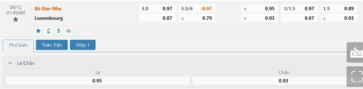 Kèo châu Âu hiệp 1:Bồ Đào Nha