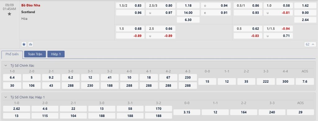 Soi kèo tổng quát Bồ Đào Nha vs Scotland