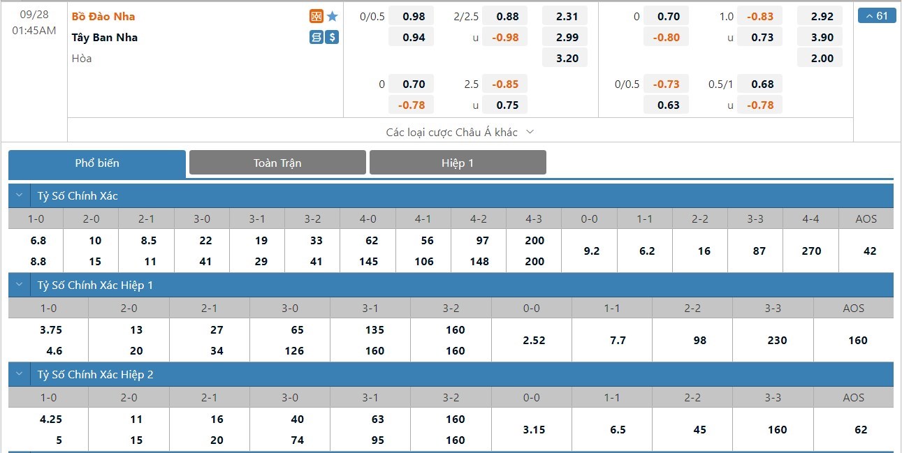 Soi kèo tổng quát Bồ Đào Nha vs Tây Ban Nha