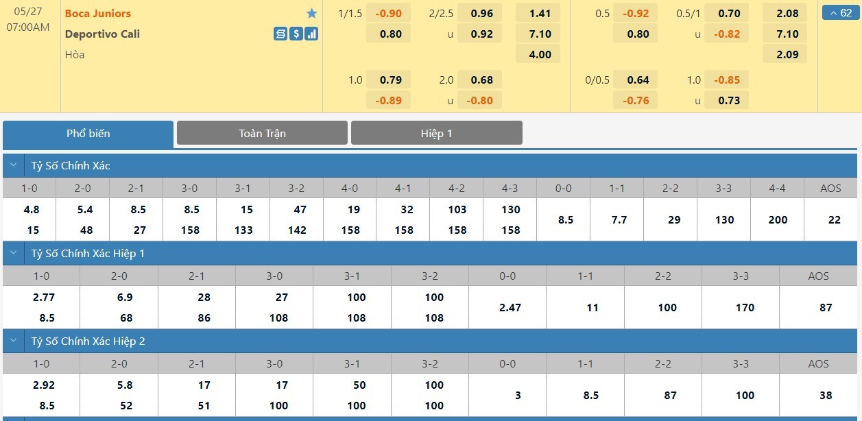 Soi kèo Boca Juniors vs Dep. Cali , 07h00, 27/05/2022
