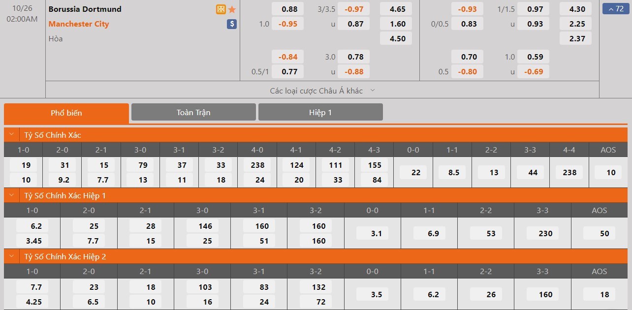 Soi kèo châu Á Borussia Dortmund vs Manchester City