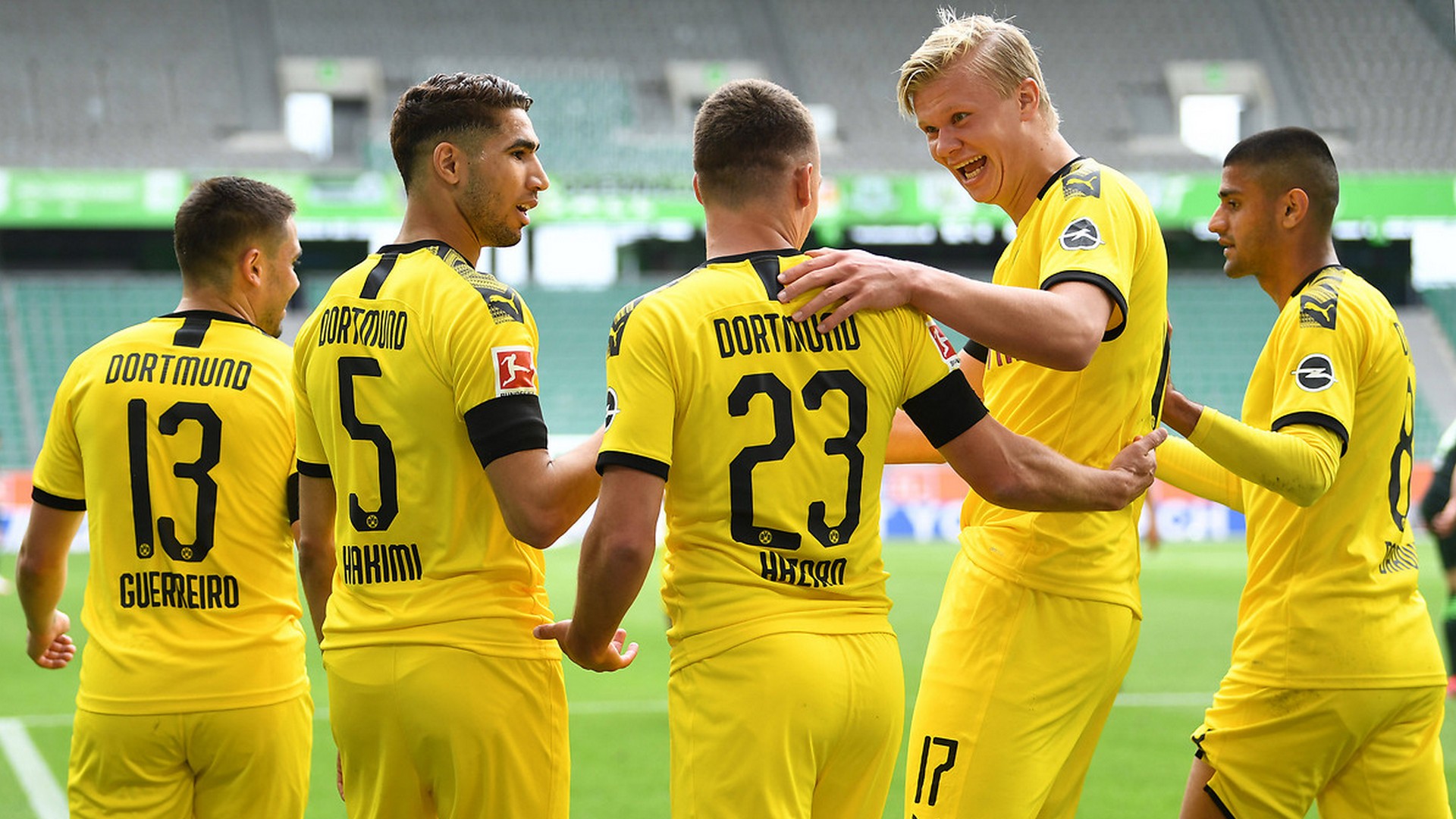 Borussia Dortmund: R. Bürki, M. Hummels, Raphaël Guerreiro, M. Akanji, Mateu Morey, E. Can, J. Brandt, J. Sancho, J. Bellingham, M. Reus, E. Haaland