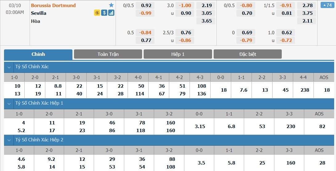 Soi kèo tài xỉu, kèo tỷ số Borussia Dortmund vs Sevilla