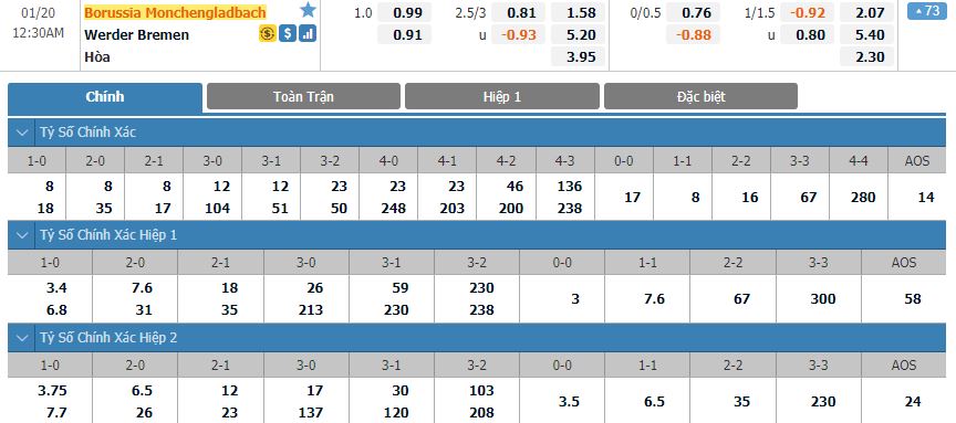 Soi kèo tổng quát Borussia Monchengladbach vs Werder Bremen