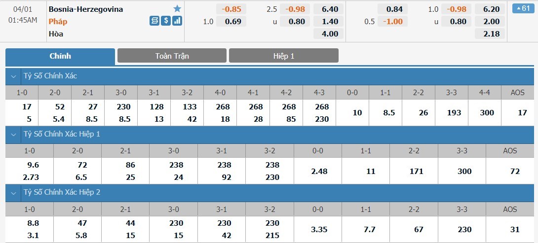 Dự đoán kèo tỷ số hiệp 1: Bosnia-Herzegovina 0-2 Pháp
