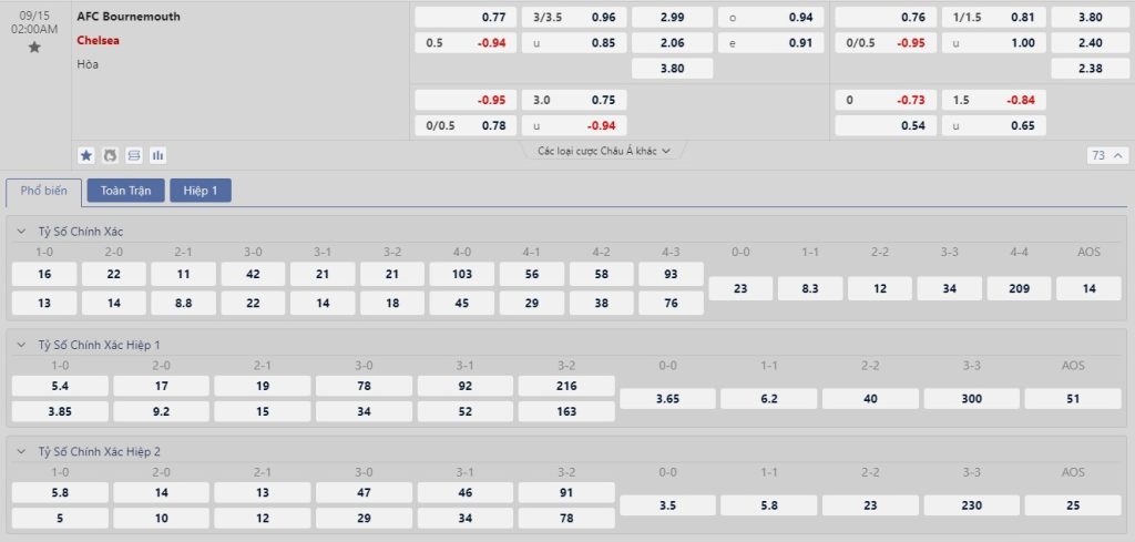 Thống kê cho thấy 3/4 lần chạm trán gần nhất giữa hai đội thì Chelsea thành công trong việc khoan thủng mành lưới của Bournemouth ngay hiệp đấu đầu tiên. Khách quan mà nói thì hiệu suất ghi bàn của Chelsea vẫn là tương đối ổn khi họ đã mang về 10 bàn thắng trong 4 trận đấu gần nhất. Vậy nên, người chơi có thể mạnh dạn đặt niềm tin vào một chiến thắng dành cho đội khách trong cả hiệp 1 lẫn kèo cả trận.