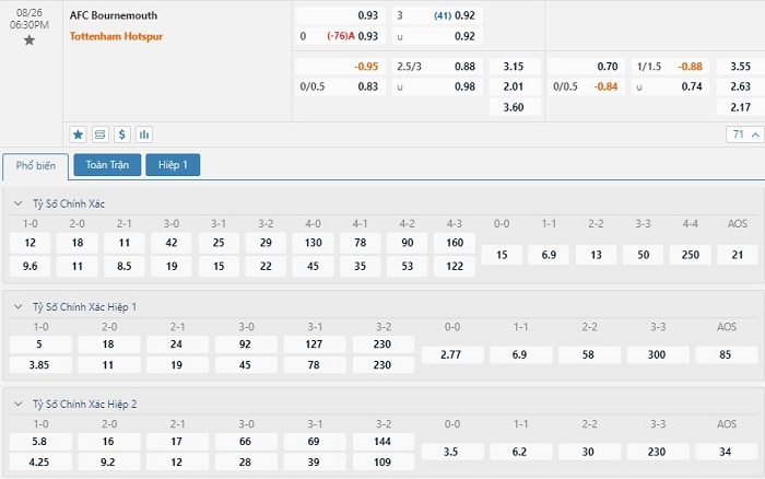 Soi kèo Bournemouth vs Tottenham, 18h30, 26/08/2023