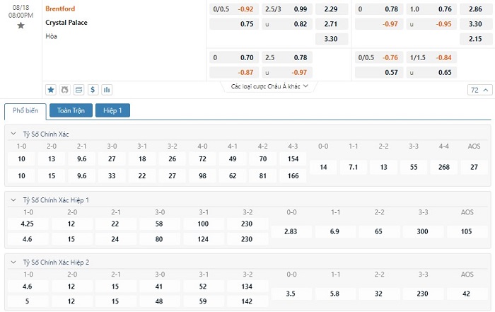 Soi kèo tổng quát Brentford vs Crystal Palace