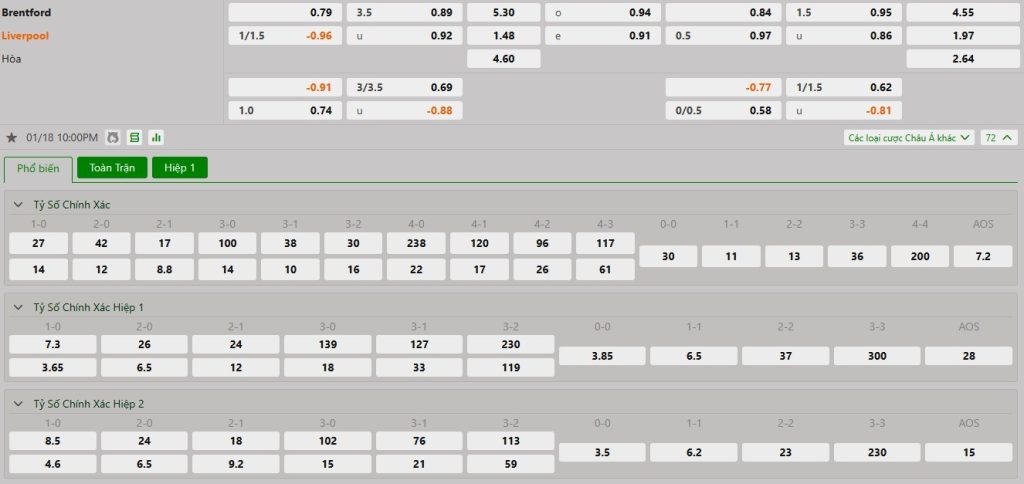 Phần lớn điểm số mà Brentford có được tại giải Ngoại hạng Anh mùa này đến từ sân nhà. Vậy nên, Liverpool dù được đánh giá cao hơn nhưng họ cũng không được phép chủ quan khinh thường đối thủ. Nhìn vào mốc tỷ lệ chấp -1 1/4 trái thì vẫn thấy được rằng đội ngũ chuyên môn tin vào khả năng đội khách sẽ biết cách để giải quyết chướng ngại vật Brentford. Song như đã đề cập thì phong độ gần đây của Liverpool đang có trục trặc. Do đó, người chơi nên cân nhắc lựa chọn ô cược chủ nhà.