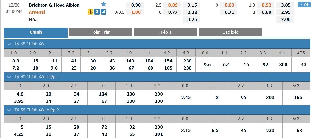 Đây là giai đoạn mà Arsenal đang khủng hoảng toàn diện. Đội khách đang thi đấu cực kì thiếu hiệu quả và ở liên tiếp 4 trận đấu gần đây, Arsenal đều không thắng. Thậm chí Arsenal còn để thua ở 3/4 trận đấu nói trên và tinh thần của họ đang xuống rất thấp. Với phong độ như vậy, Arsenal có thể sẽ gặp nhiều khó khăn ở trận này. Brighton không phải một đội bóng quá yếu kém và trong 7 vòng đấu gần đây, đội chủ nhà cũng chỉ để thua 2 lần. Trong những mùa giải gần đây, Arsenal cũng thường xuyên gặp khó khăn mỗi khi đối đầu với Brighton. Trong 5 lần gần nhất gặp đối thủ này, không lần nào Arsenal giành được chiến thắng. Thâm chí họ còn để thua ở cả 2 lần 2 đội gặp nhau ở mùa giải trước. Với tỷ lệ chấp 1/4 trái, cửa dưới Brighton sẽ là lựa chọn được đánh giá cao hơn ở kèo đấu này.