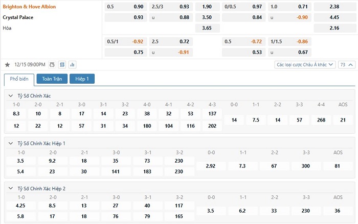 Soi kèo tổng quát Brighton vs Crystal Palace