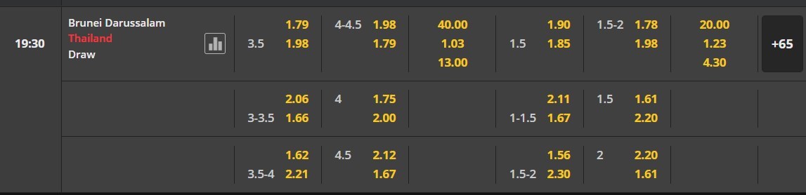 Soi kèo tài xỉu, kèo tỷ số Brunei vs Thái Lan