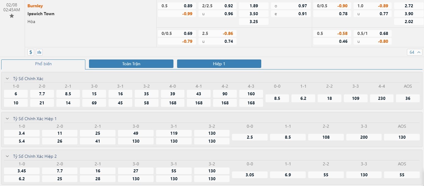 Nhà cái chỉ đưa ra mốc tỷ lệ tài xỉu 2 1/4 trái cho trận đấu này đủ để thấy đội ngũ thiết lập tỷ lệ không đánh giá cao tiềm năng ra bàn thắng ở cặp trận này. Thống kê chỉ ra rằng cả 6 màn so tài gần nhất giữa Burnley và Ipswich đều kết thúc. Các nhà đầu tư nên tin tưởng vào khả năng ra cửa Xỉu ở cuộc đối đầu này với tỷ lệ tài xỉu là 2 1/4 trái.