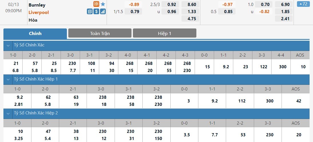 Soi kèo tài xỉu, kèo tỷ số Burnley vs Liverpool