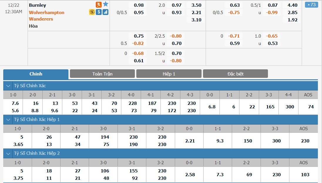 Soi kèo tổng quát Burnley vs Wolverhampton