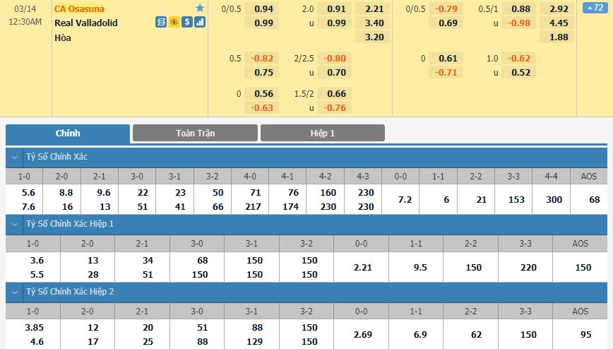 Soi kèo tổng quát CA Osasuna vs Real Valladolid