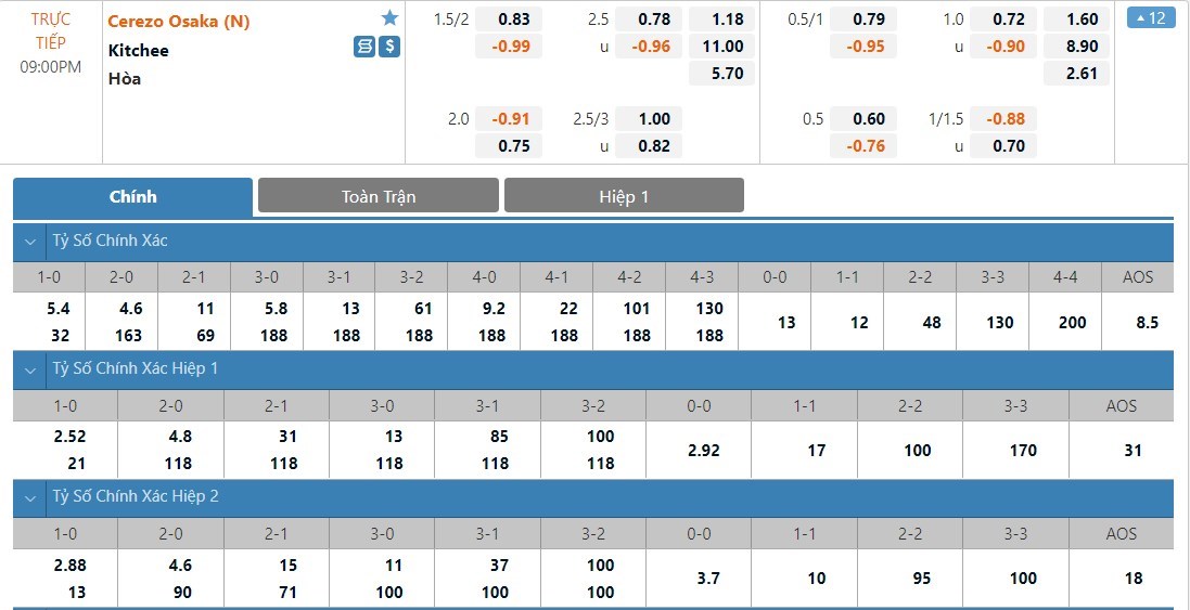 Đây là lúc mà Cerezo Osaka đang tấn công không quá hiệu quả và những trận đấu của họ thường xuất hiện rất ít bàn thắng. Trong 8 trận gần nhất của Cerezo Osaka, có tới 7 trận chỉ kết thúc với tối đa là 2 bàn. Trước một đối thủ mạnh, Kitchee cũng sẽ rất khó để có được bàn thắng và ô cược xỉu sẽ là lựa chọn cho kèo đấu này.