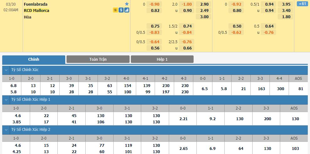 Dự đoán kèo tỷ số hiệp 1: CF Fuenlabrada 1-1 RCD Mallorca