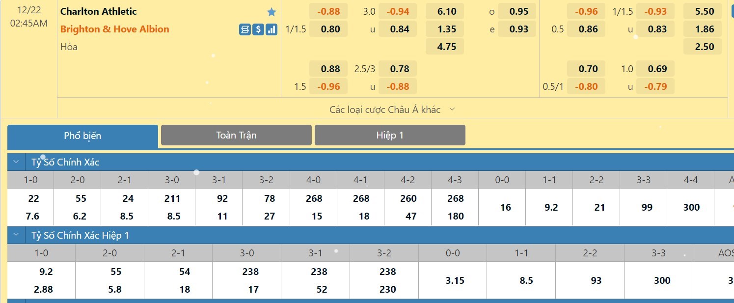 Soi kèo tài xỉu, kèo tỷ số Charlton vs Brighton