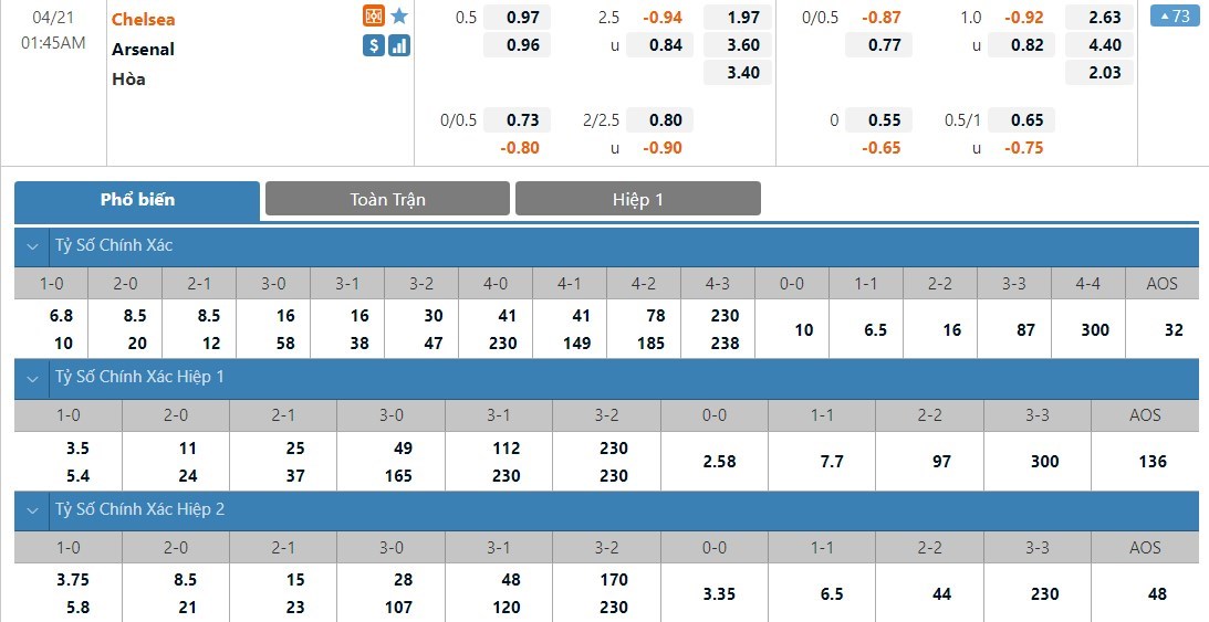 Soi kèo Chelsea vs Arsenal, 1h45, 21/4/2022