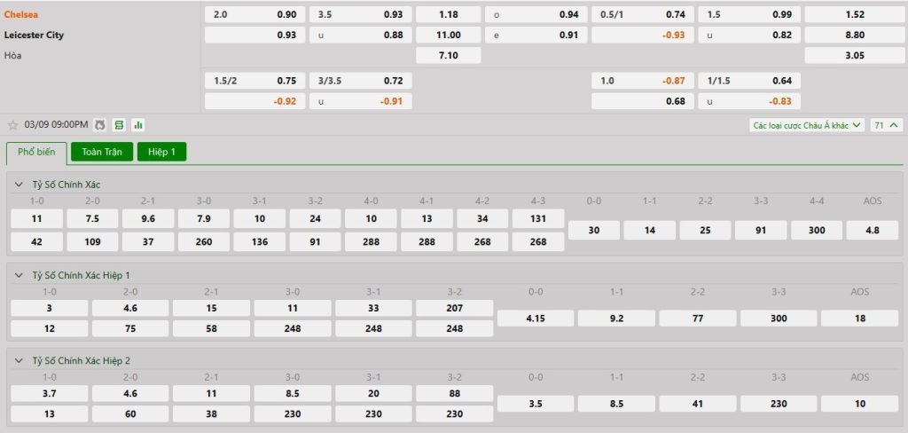 Soi kèo tài xỉu, kèo tỷ số Chelsea vs Leicester City