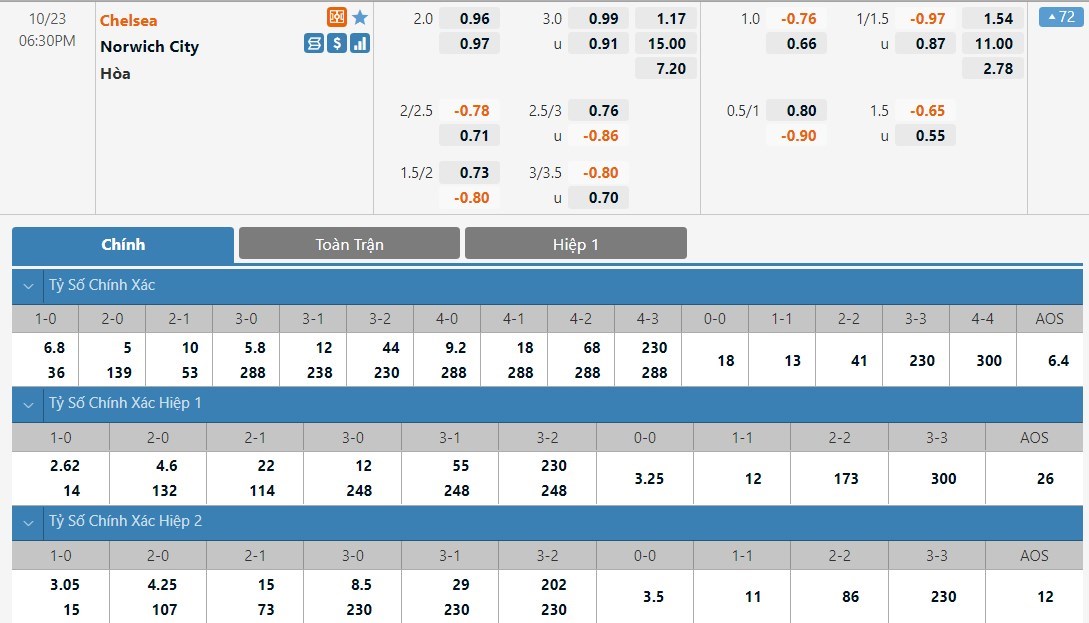 Soi kèo châu Á Chelsea vs Norwich City