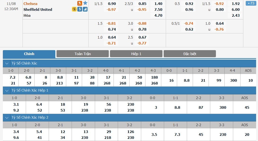 Soi kèo tổng quát Chelsea vs Sheffield United