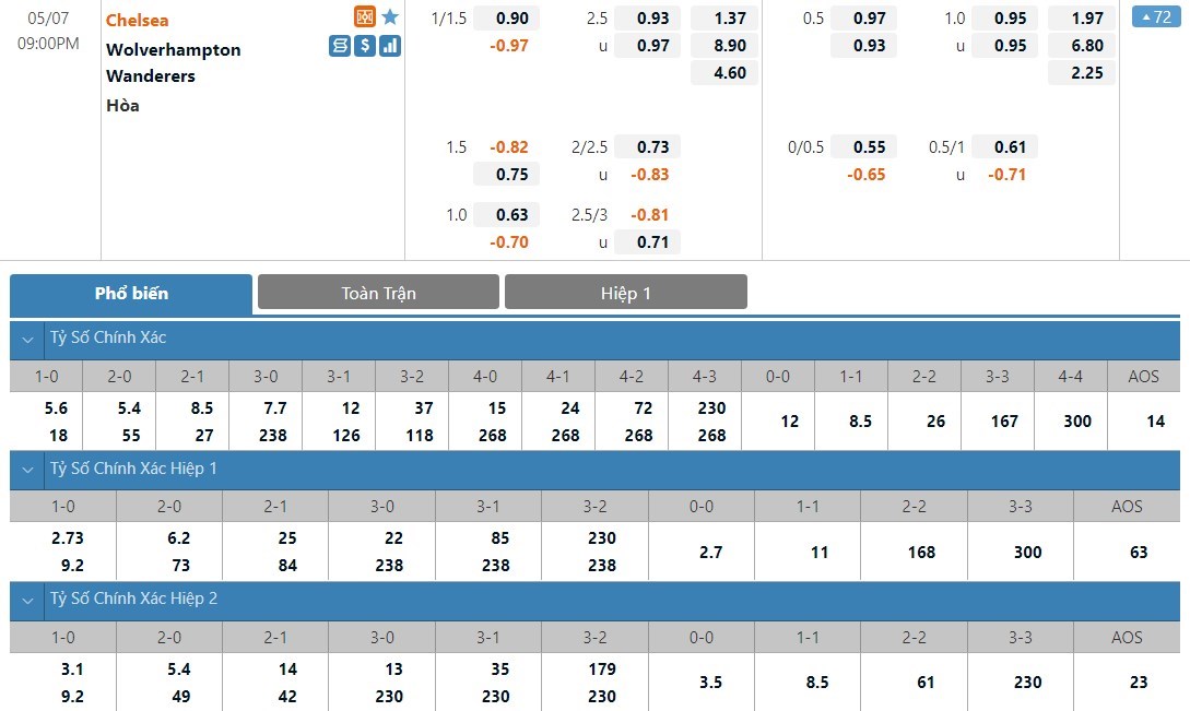 Soi kèo tổng quát Chelsea vs Wolverhampton