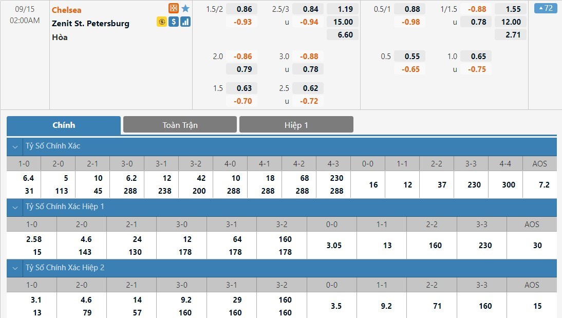 Soi kèo châu Á Chelsea vs Zenit Saint Petersburg
