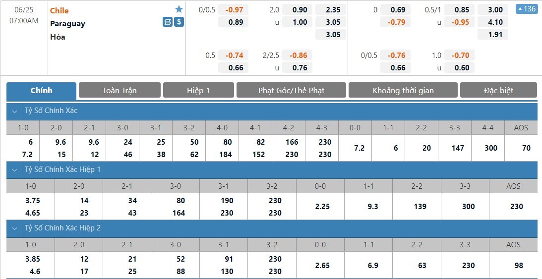 Soi kèo tài xỉu, kèo tỷ số Chile vs Paraguay