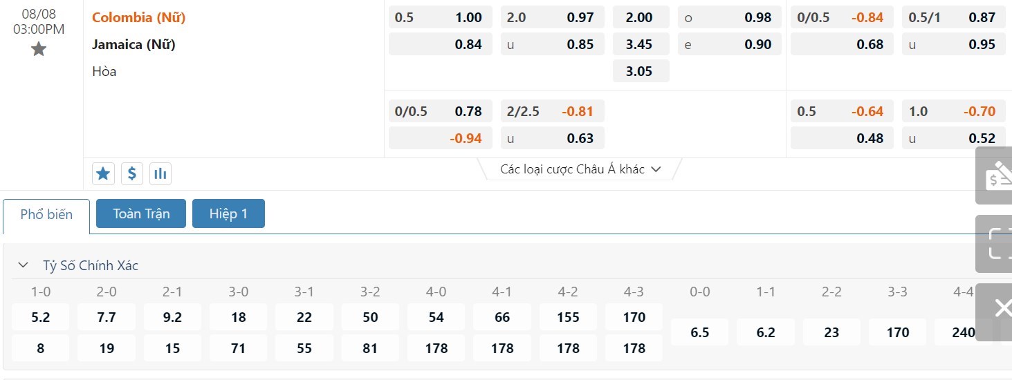 Soi kèo tài xỉu, kèo tỷ số Colombia vs Jamaica