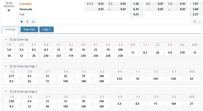 Soi kèo tài xỉu, kèo tỷ số Colombia vs Venezuela