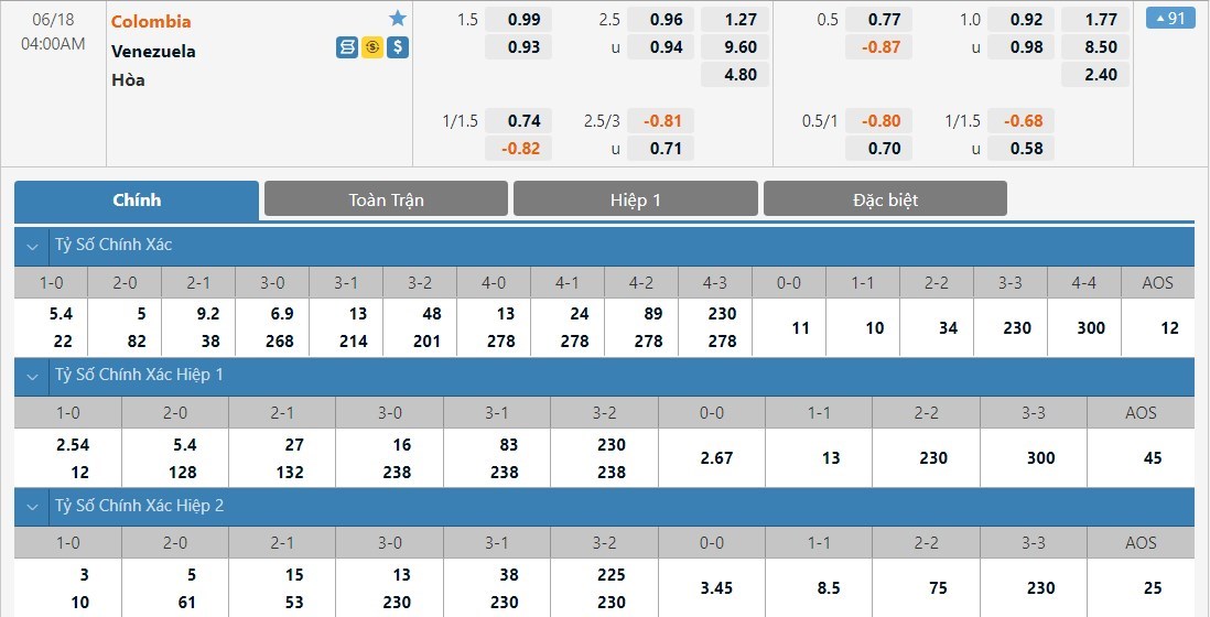 Soi kèo tài xỉu, kèo tỷ số Colombia vs Venezuela