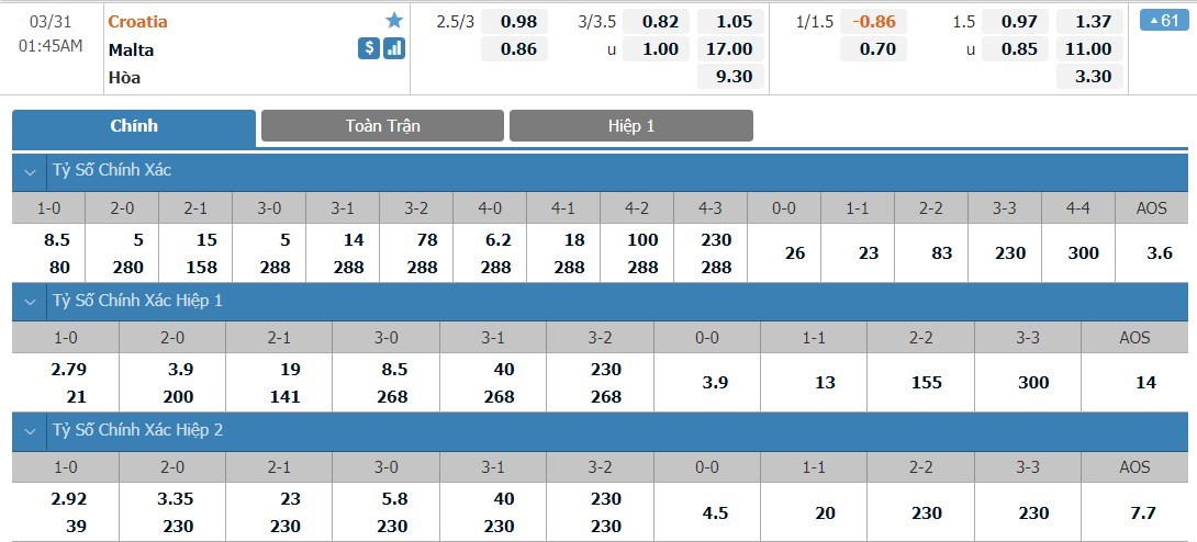 Soi kèo tài xỉu, kèo tỷ số Croatia vs Malta
