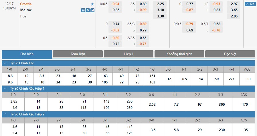 Soi kèo tài xỉu, kèo tỷ số Croatia vs Morocco