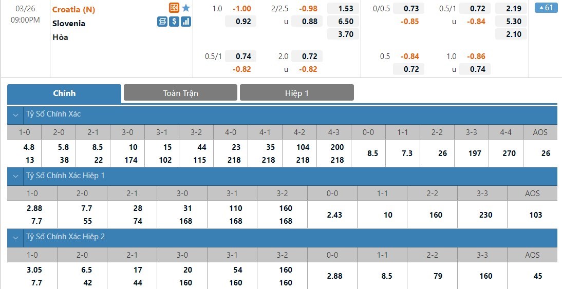 Dự đoán kèo tỷ số hiệp 1: Croatia 0-0 Slovenia