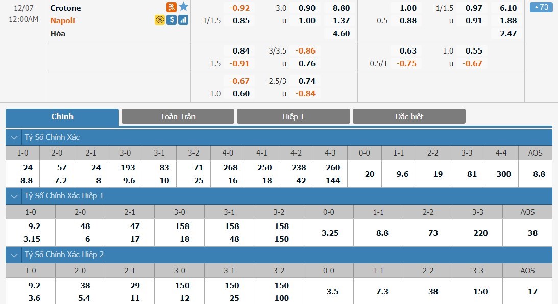 Soi kèo tài xỉu, kèo tỷ số Crotone vs Napoli