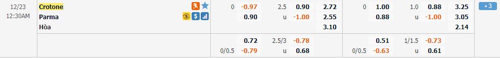 Soi kèo châu Á Crotone vs Parma