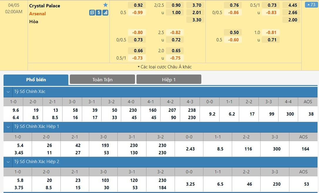 Với vị thế của 1 đại gia trong big six thì việc đội khách được đánh giá cao hơn về trình độ cũng là điều không quá khó hiểu. Tuy nhiên xét về phong độ thì đoàn quân của Vieira cũng chẳng thua kém là bao. Hơn nữa trận tới họ còn có lợi thế sân nhà. Vì vậy ở kèo đấu này thì Crystal Palace đang được xem là lựa chọn an toàn hơn.