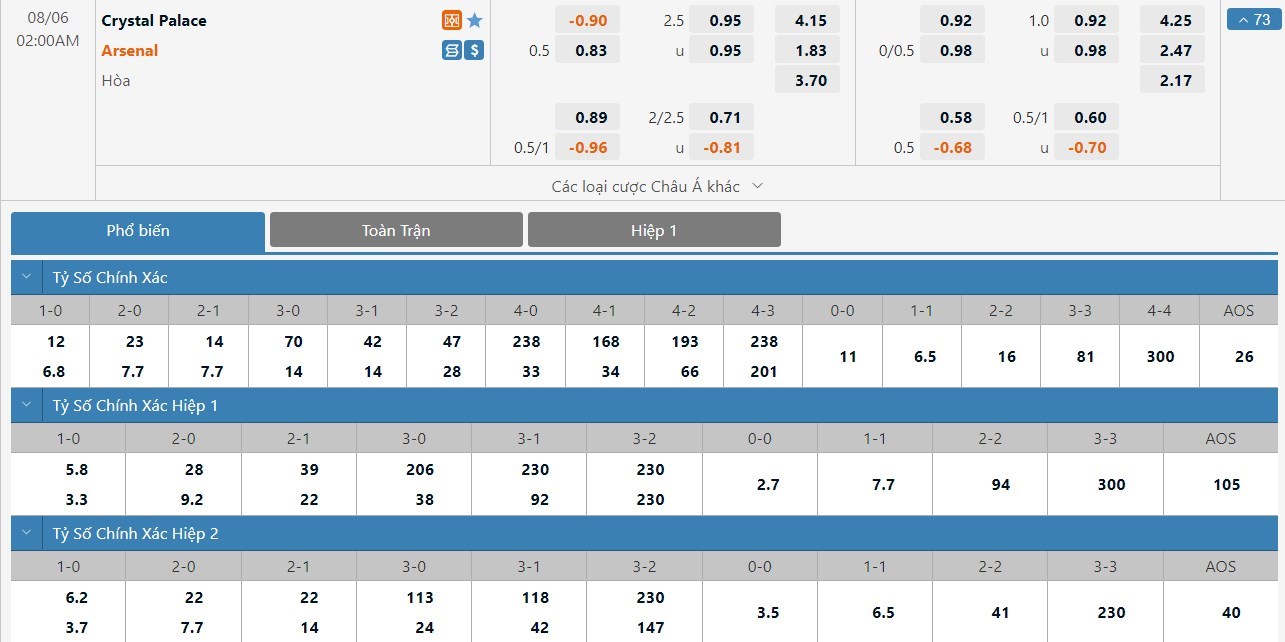 Soi kèo tổng quát Crystal Palace vs Arsenal