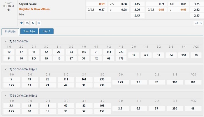 Soi kèo tổng quát Crystal Palace vs Brighton