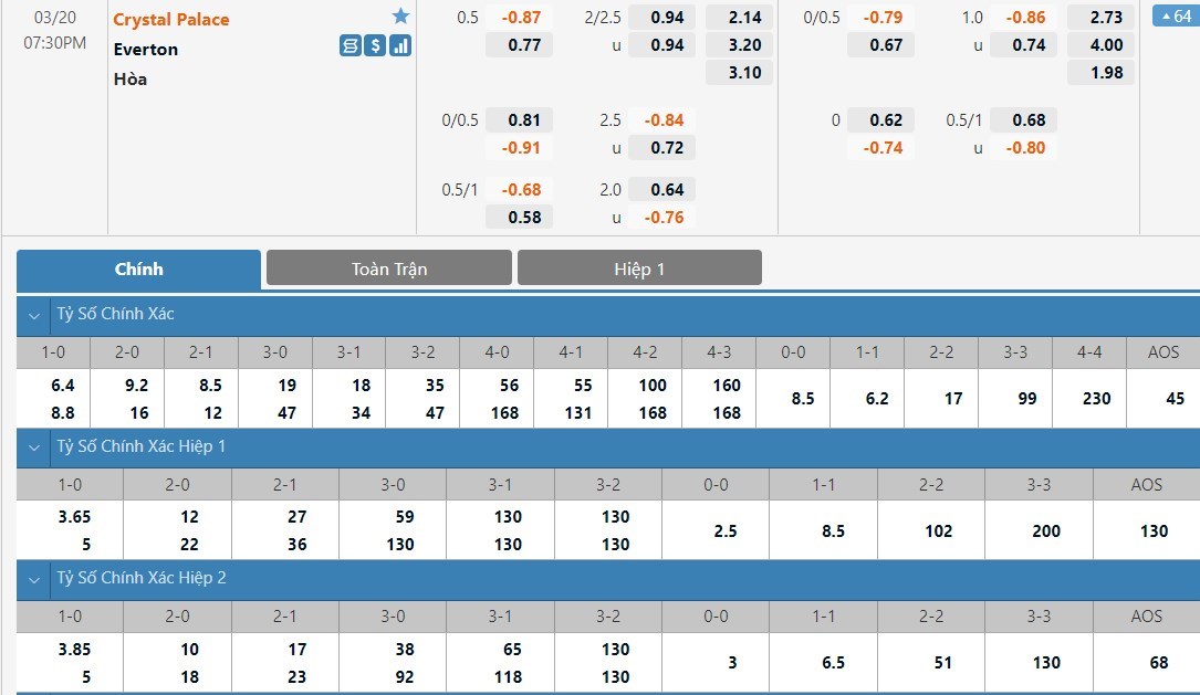 Là những đội có trình độ khá tương đồng nên những cuộc đọ sức giữa Crystal Palace và Everton vẫn luôn diễn ra 1 cách cởi mở với rất nhiều bàn thắng được ghi. Thậm chí có tới 3 trên 4 cuộc đụng độ gần nhất giữa họ khép lại với từ 3 pha lập công trở lên. Do đó ở kèo tài xỉu thì ô cược tài vẫn sẽ là lựa chọn an toàn hơn.