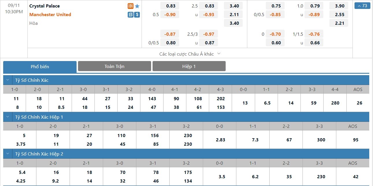 Soi kèo châu Á Crystal Palace vs Manchester United