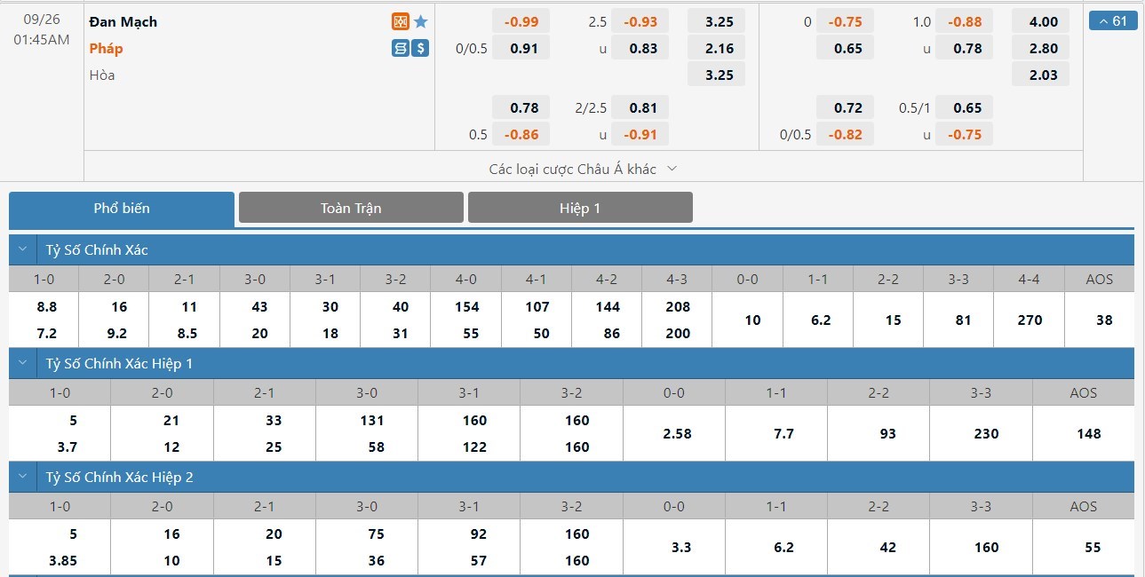 Soi kèo tài xỉu, kèo tỷ số Đan Mạch vs Pháp