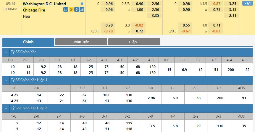 Soi kèo tài xỉu, kèo tỷ số DC United vs Chicago Fire
