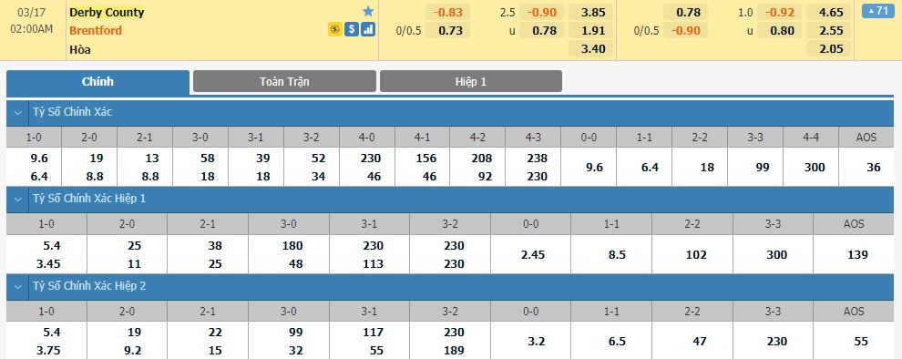 Soi kèo tài xỉu, kèo tỷ số Derby County vs Brentford