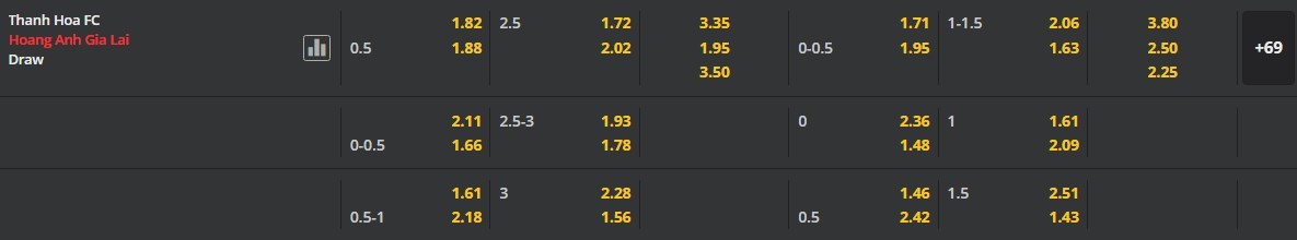Hoàng Anh Gia Lai được dự đoán sẽ là cửa trên ở trận này với một tỷ lệ cược không quá cao. Những kết quả Thanh Hóa có điểm sẽ có tỷ lệ cược khá hấp dẫn tuy nhiên đây là kèo đấu mà người chơi không nên mạo hiểm. Hoàng Anh Gia Lai đang có phong độ cực cao và so với Thanh Hóa, đội khách đang tỏ ra hiệu quả hơn nhiều. Lựa chọn Hoàng Anh Gia Lai an toàn vẫn sẽ là lựa chọn được đánh giá cao hơn ở kèo đấu này.