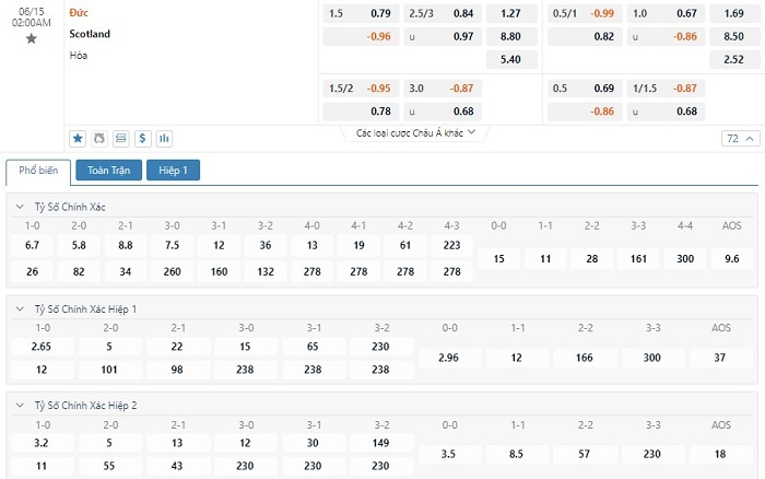 Soi kèo tài xỉu, kèo tỷ số Đức vs Scotland