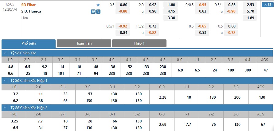 Soi kèo tổng quát Eibar vs Huesca