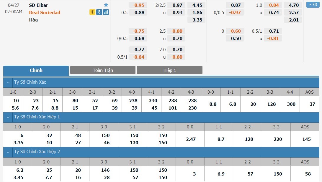 Eibar vẫn đang thể hiện một lối chơi cực kì kém hiệu quả. Ở liên tiếp 4 vòng đấu gần đây, Eibar đều phải nhận thất bại. Cửa cược Eibar là lựa chọn nên tránh lúc này khi mà họ cũng đã thua kèo ở 11/12 trận gần đây. Đây là lúc mà Eibar bị đánh giá rất thấp. Trong khi đó Real Sociedad vẫn đang cho thấy họ là một đội bóng mạnh tại La Liga mùa này. Ở vòng đấu vừa qua, Real Sociedad có chiến thắng ấn tượng trước đối thủ khó chịu Celta Vigo với tỷ số 2-1. Chỉ phải làm khách trước đội bóng đang đội sổ trên BXH, Real Sociedad sẽ đủ khả năng giành thêm 1 chiến thắng. Với tỷ lệ chấp 1/2 trái, cửa trên Real Sociedad sẽ là lựa chọn được đánh giá cao hơn ở kèo đấu này.